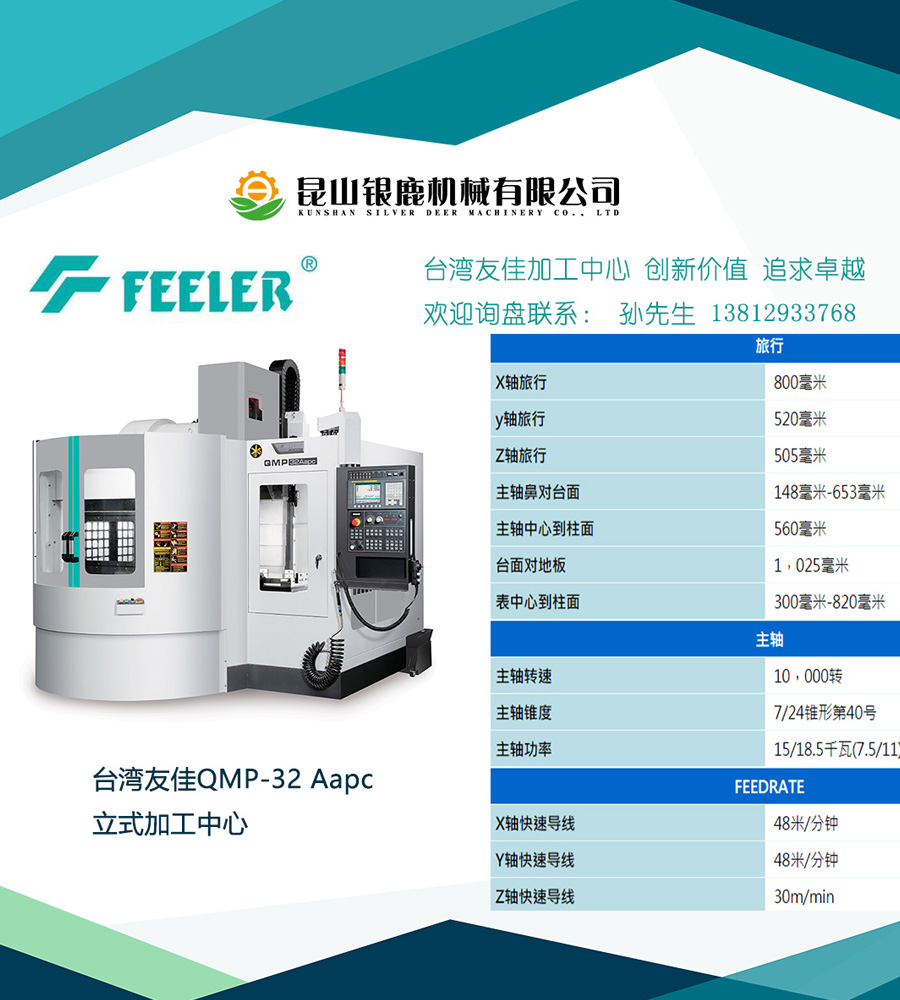 臺灣友嘉QMP-23A-APC雙互換任務臺立加、合用于多量量產物持久定單加工、削減了裝夾期待時候、進步了機器裝備的稼動率。三軸路程580*420*510mm,BT40主軸、主軸轉速10000rpm;搭配20刀位刀臂式刀庫。